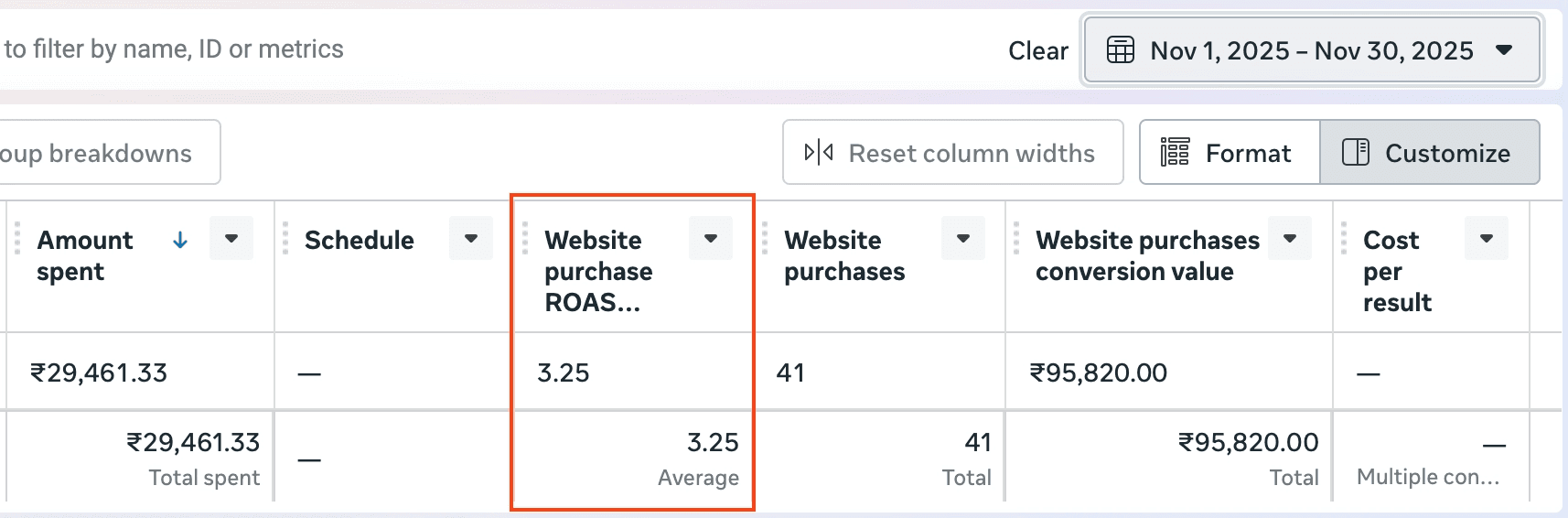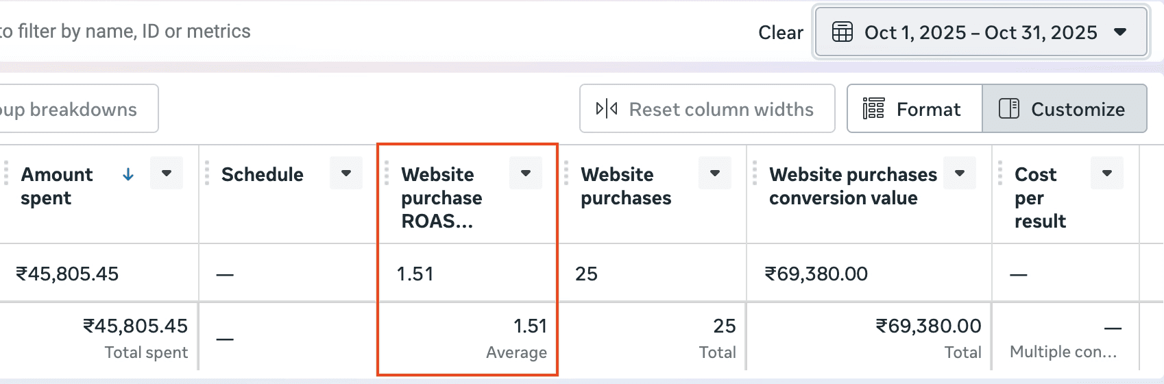 ROAS — below the 3× minimum needed to cover costs and operate profitably